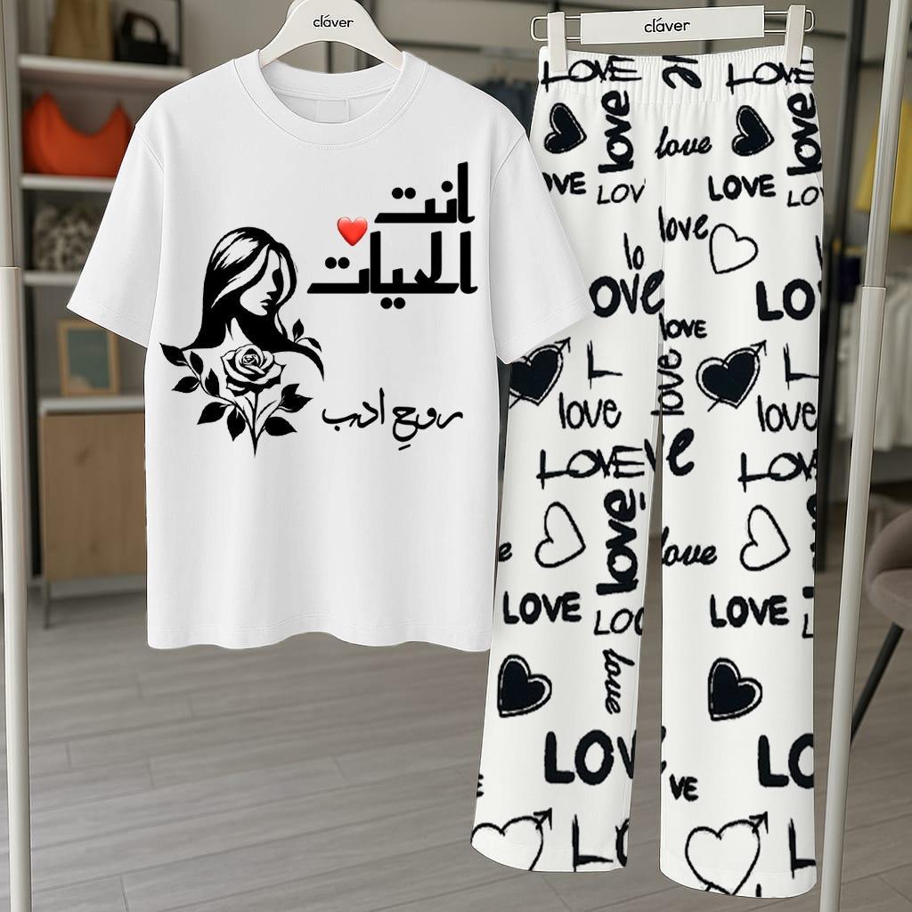 Comfortable 2 Pcs Cotton Printed Night Suit - Round Neck Jersey Fabric